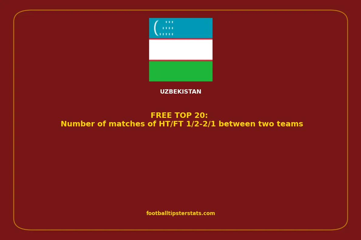 Here is a detailed overview of the teams with the highest number of matches of ht/ft 1/2-2/1 between two teams in Uzbekistan. This list highlights clubs that consistently produce high-scoring games, based on recent statistical performance. Whether you're analyzing trends, preparing betting strategies, or simply exploring offensive team profiles, these numbers offer a clear insight into which teams generate the most goal-rich matches.