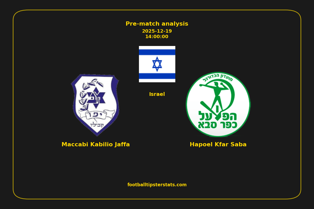 Analyzing the recent performance of Maccabi Kabilio Jaffa and Hapoel Kfar Saba in Israel, we can derive insights that may inform future match predictions. By examining their individual game histories, head-to-head encounters, and overall trends, we can identify patterns that highlight strengths and weaknesses for both teams. This comprehensive review aims to provide a clearer understanding of their competitive dynamics and potential outcomes in upcoming fixtures.This pre-match analysis covers the upcoming fixture between Maccabi Kabilio Jaffa and Hapoel Kfar Saba. Below you’ll find a detailed breakdown of both teams’ recent form, goal statistics, and head-to-head performance. These insights provide a clear picture of current momentum and can be valuable for match forecasting, tactical evaluation, or betting analysis. Please note that these suggestions are based on historical data and trends. While they provide valuable insights, actual match outcomes can be influenced by various unpredictable factors. Always consider multiple aspects before making any decisions based on these analyses.