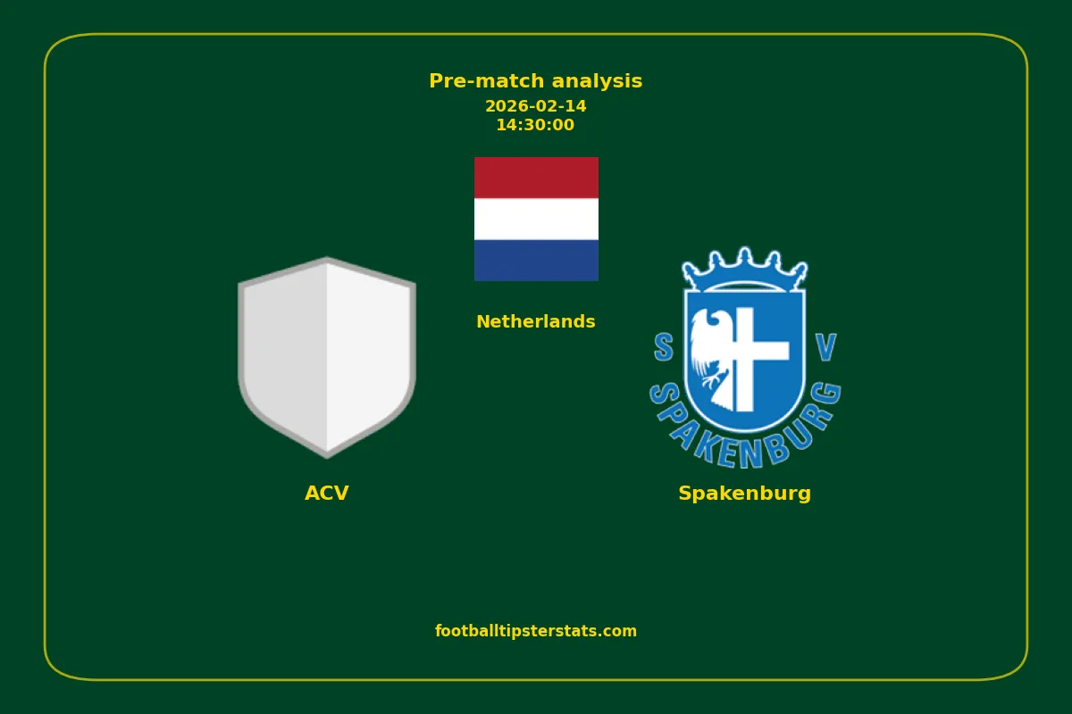 Analyzing the recent performance of ACV and Spakenburg in Netherlands, we can derive insights that may inform future match predictions. By examining their individual game histories, head-to-head encounters, and overall trends, we can identify patterns that highlight strengths and weaknesses for both teams. This comprehensive review aims to provide a clearer understanding of their competitive dynamics and potential outcomes in upcoming fixtures.This pre-match analysis covers the upcoming fixture between ACV and Spakenburg. Below you’ll find a detailed breakdown of both teams’ recent form, goal statistics, and head-to-head performance. These insights provide a clear picture of current momentum and can be valuable for match forecasting, tactical evaluation, or betting analysis. Please note that these suggestions are based on historical data and trends. While they provide valuable insights, actual match outcomes can be influenced by various unpredictable factors. Always consider multiple aspects before making any decisions based on these analyses.