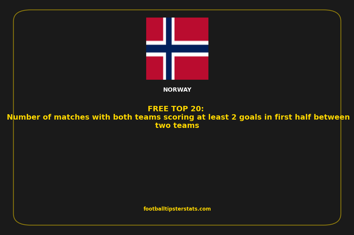 Here is a detailed overview of the teams with the highest number of matches with both teams scoring at least 2 goals in first half between two teams in Norway. This list highlights clubs that consistently produce high-scoring games, based on recent statistical performance. Whether you're analyzing trends, preparing betting strategies, or simply exploring offensive team profiles, these numbers offer a clear insight into which teams generate the most goal-rich matches.
