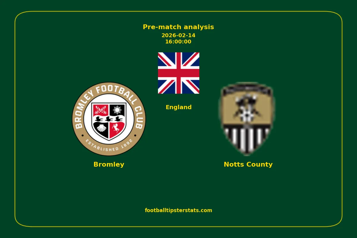 Analyzing the recent performance of Bromley and Notts County in England, we can derive insights that may inform future match predictions. By examining their individual game histories, head-to-head encounters, and overall trends, we can identify patterns that highlight strengths and weaknesses for both teams. This comprehensive review aims to provide a clearer understanding of their competitive dynamics and potential outcomes in upcoming fixtures.This pre-match analysis covers the upcoming fixture between Bromley and Notts County. Below you’ll find a detailed breakdown of both teams’ recent form, goal statistics, and head-to-head performance. These insights provide a clear picture of current momentum and can be valuable for match forecasting, tactical evaluation, or betting analysis. Please note that these suggestions are based on historical data and trends. While they provide valuable insights, actual match outcomes can be influenced by various unpredictable factors. Always consider multiple aspects before making any decisions based on these analyses.