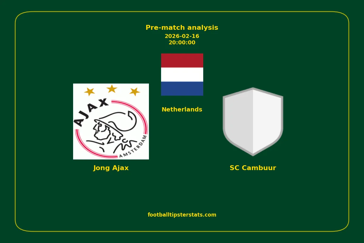 Analyzing the recent performance of Jong Ajax and SC Cambuur in Netherlands, we can derive insights that may inform future match predictions. By examining their individual game histories, head-to-head encounters, and overall trends, we can identify patterns that highlight strengths and weaknesses for both teams. This comprehensive review aims to provide a clearer understanding of their competitive dynamics and potential outcomes in upcoming fixtures.This pre-match analysis covers the upcoming fixture between Jong Ajax and SC Cambuur. Below you’ll find a detailed breakdown of both teams’ recent form, goal statistics, and head-to-head performance. These insights provide a clear picture of current momentum and can be valuable for match forecasting, tactical evaluation, or betting analysis. Please note that these suggestions are based on historical data and trends. While they provide valuable insights, actual match outcomes can be influenced by various unpredictable factors. Always consider multiple aspects before making any decisions based on these analyses.