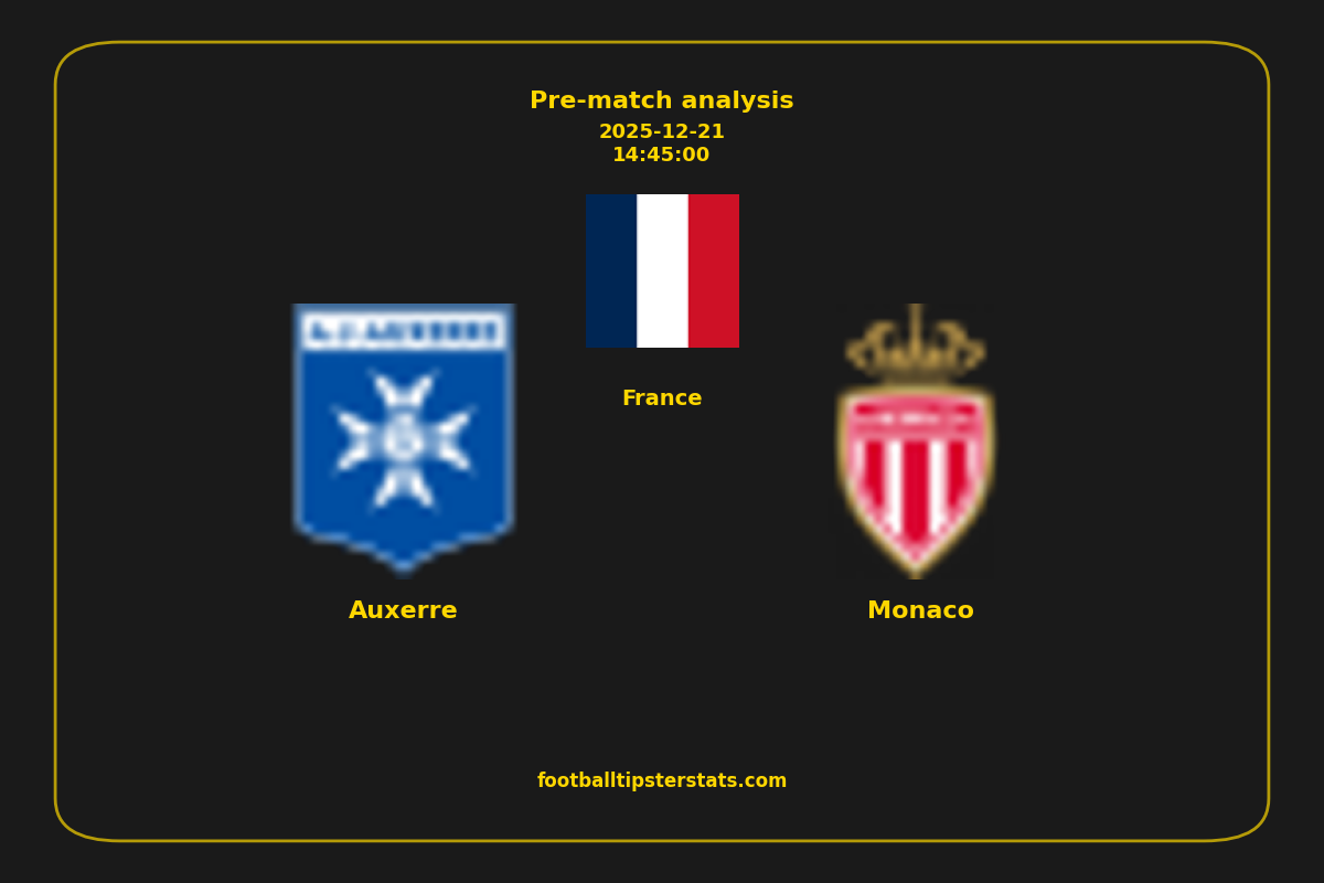 Analyzing the recent performance of Auxerre and Monaco in France, we can derive insights that may inform future match predictions. By examining their individual game histories, head-to-head encounters, and overall trends, we can identify patterns that highlight strengths and weaknesses for both teams. This comprehensive review aims to provide a clearer understanding of their competitive dynamics and potential outcomes in upcoming fixtures.This pre-match analysis covers the upcoming fixture between Auxerre and Monaco. Below you’ll find a detailed breakdown of both teams’ recent form, goal statistics, and head-to-head performance. These insights provide a clear picture of current momentum and can be valuable for match forecasting, tactical evaluation, or betting analysis. Please note that these suggestions are based on historical data and trends. While they provide valuable insights, actual match outcomes can be influenced by various unpredictable factors. Always consider multiple aspects before making any decisions based on these analyses.