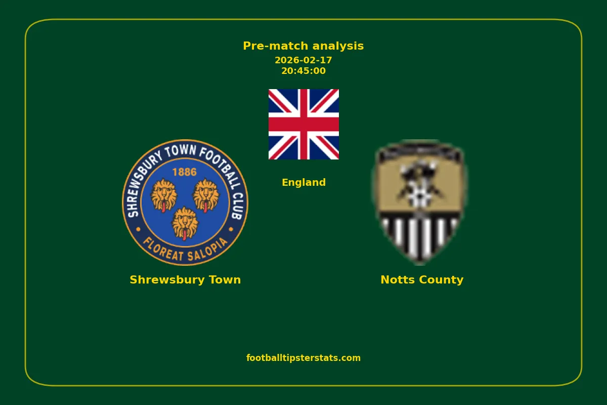Analyzing the recent performance of Shrewsbury Town and Notts County in England, we can derive insights that may inform future match predictions. By examining their individual game histories, head-to-head encounters, and overall trends, we can identify patterns that highlight strengths and weaknesses for both teams. This comprehensive review aims to provide a clearer understanding of their competitive dynamics and potential outcomes in upcoming fixtures.This pre-match analysis covers the upcoming fixture between Shrewsbury Town and Notts County. Below you’ll find a detailed breakdown of both teams’ recent form, goal statistics, and head-to-head performance. These insights provide a clear picture of current momentum and can be valuable for match forecasting, tactical evaluation, or betting analysis. Please note that these suggestions are based on historical data and trends. While they provide valuable insights, actual match outcomes can be influenced by various unpredictable factors. Always consider multiple aspects before making any decisions based on these analyses.