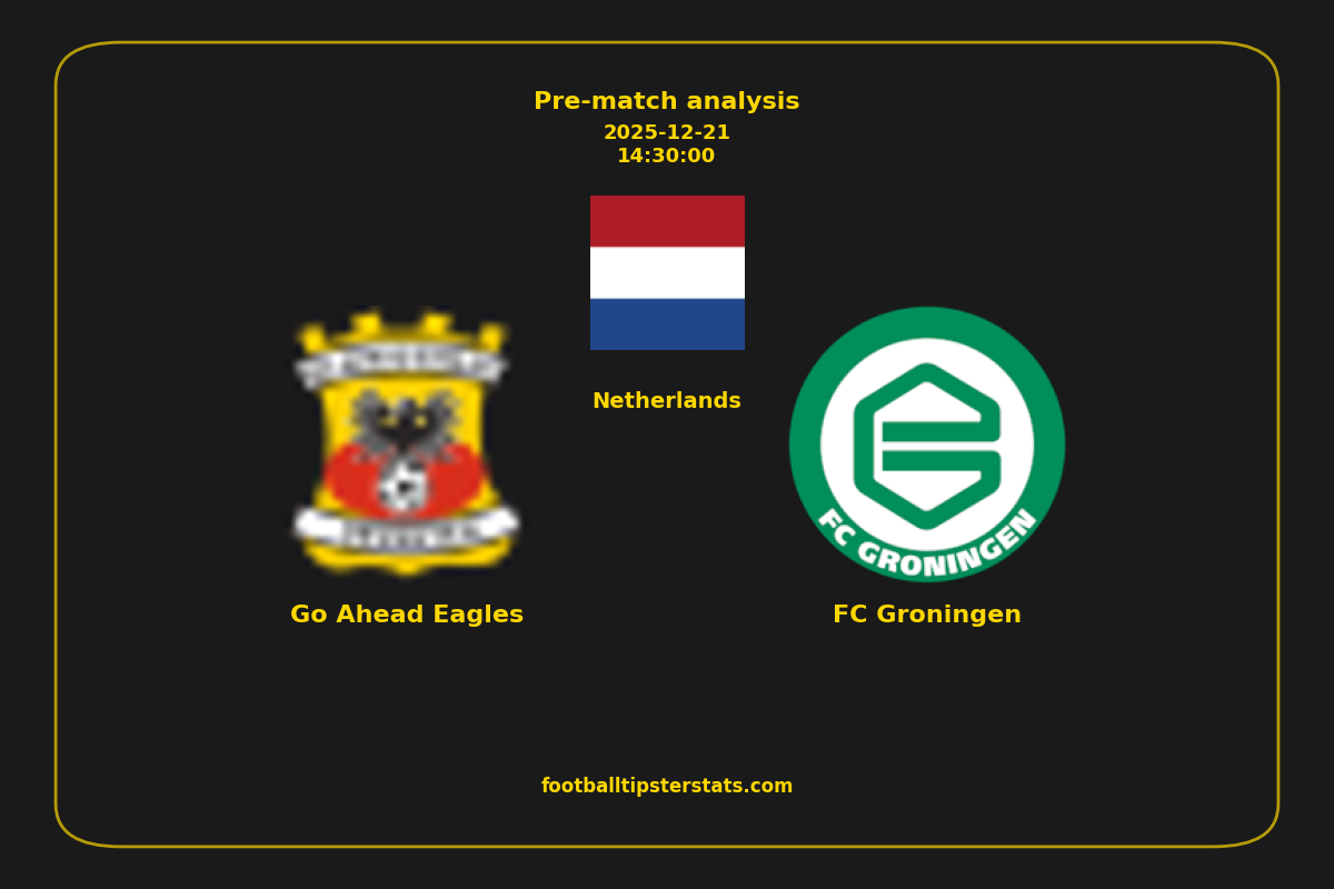 Analyzing the recent performance of Go Ahead Eagles and FC Groningen in Netherlands, we can derive insights that may inform future match predictions. By examining their individual game histories, head-to-head encounters, and overall trends, we can identify patterns that highlight strengths and weaknesses for both teams. This comprehensive review aims to provide a clearer understanding of their competitive dynamics and potential outcomes in upcoming fixtures.This pre-match analysis covers the upcoming fixture between Go Ahead Eagles and FC Groningen. Below you’ll find a detailed breakdown of both teams’ recent form, goal statistics, and head-to-head performance. These insights provide a clear picture of current momentum and can be valuable for match forecasting, tactical evaluation, or betting analysis. Please note that these suggestions are based on historical data and trends. While they provide valuable insights, actual match outcomes can be influenced by various unpredictable factors. Always consider multiple aspects before making any decisions based on these analyses.