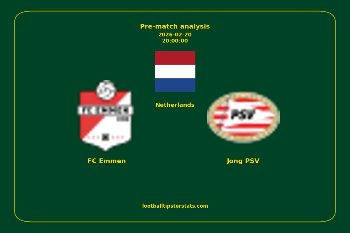 Analyzing the recent performance of FC Emmen and Jong PSV in Netherlands, we can derive insights that may inform future match predictions. By examining their individual game histories, head-to-head encounters, and overall trends, we can identify patterns that highlight strengths and weaknesses for both teams. This comprehensive review aims to provide a clearer understanding of their competitive dynamics and potential outcomes in upcoming fixtures.This pre-match analysis covers the upcoming fixture between FC Emmen and Jong PSV. Below you’ll find a detailed breakdown of both teams’ recent form, goal statistics, and head-to-head performance. These insights provide a clear picture of current momentum and can be valuable for match forecasting, tactical evaluation, or betting analysis. Please note that these suggestions are based on historical data and trends. While they provide valuable insights, actual match outcomes can be influenced by various unpredictable factors. Always consider multiple aspects before making any decisions based on these analyses.