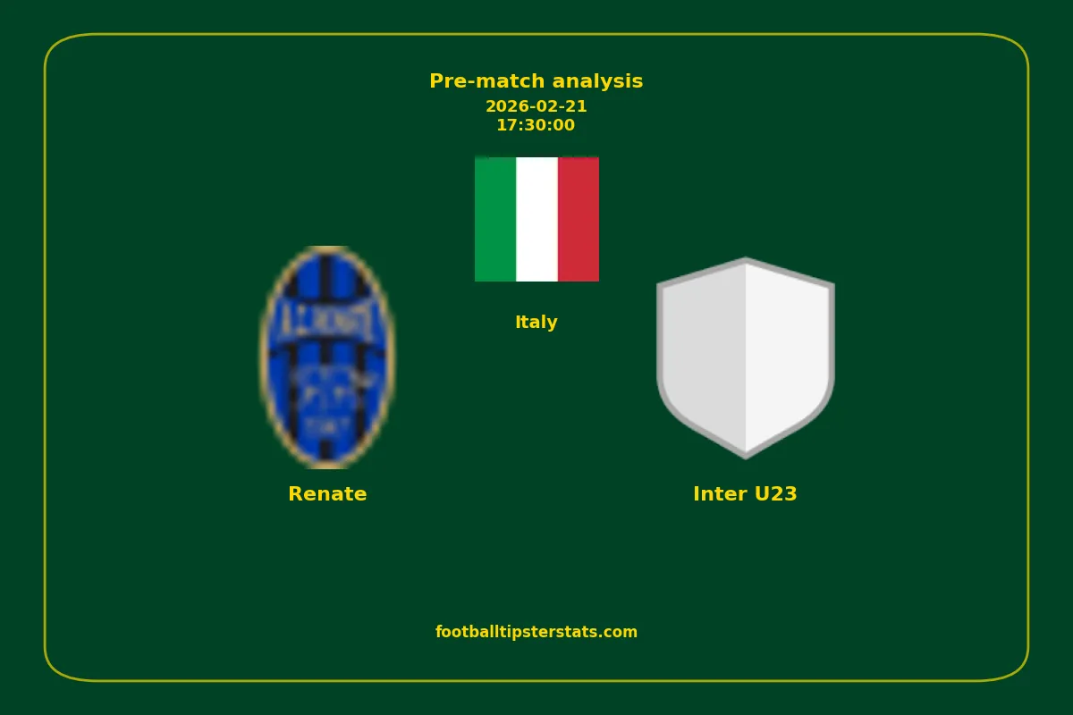 Analyzing the recent performance of Renate and Inter U23 in Italy, we can derive insights that may inform future match predictions. By examining their individual game histories, head-to-head encounters, and overall trends, we can identify patterns that highlight strengths and weaknesses for both teams. This comprehensive review aims to provide a clearer understanding of their competitive dynamics and potential outcomes in upcoming fixtures.This pre-match analysis covers the upcoming fixture between Renate and Inter U23. Below you’ll find a detailed breakdown of both teams’ recent form, goal statistics, and head-to-head performance. These insights provide a clear picture of current momentum and can be valuable for match forecasting, tactical evaluation, or betting analysis. Please note that these suggestions are based on historical data and trends. While they provide valuable insights, actual match outcomes can be influenced by various unpredictable factors. Always consider multiple aspects before making any decisions based on these analyses.