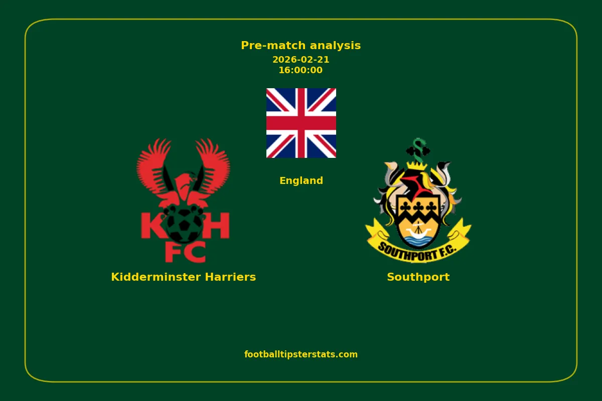Analyzing the recent performance of Kidderminster Harriers and Southport in England, we can derive insights that may inform future match predictions. By examining their individual game histories, head-to-head encounters, and overall trends, we can identify patterns that highlight strengths and weaknesses for both teams. This comprehensive review aims to provide a clearer understanding of their competitive dynamics and potential outcomes in upcoming fixtures.This pre-match analysis covers the upcoming fixture between Kidderminster Harriers and Southport. Below you’ll find a detailed breakdown of both teams’ recent form, goal statistics, and head-to-head performance. These insights provide a clear picture of current momentum and can be valuable for match forecasting, tactical evaluation, or betting analysis. Please note that these suggestions are based on historical data and trends. While they provide valuable insights, actual match outcomes can be influenced by various unpredictable factors. Always consider multiple aspects before making any decisions based on these analyses.