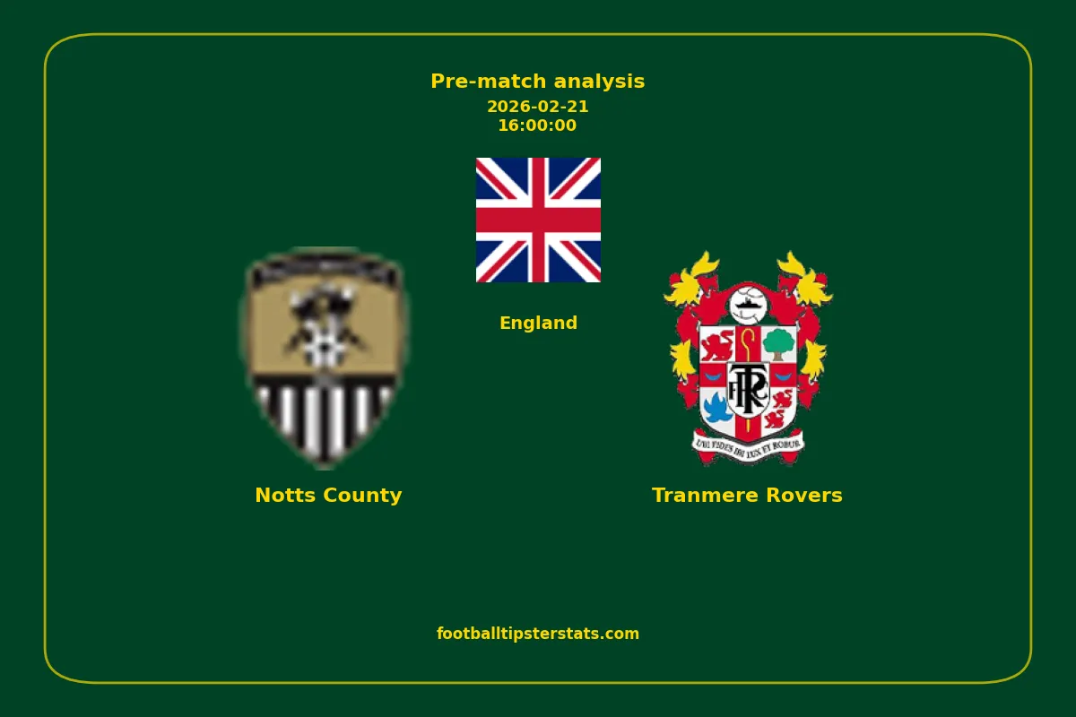 Analyzing the recent performance of Notts County and Tranmere Rovers in England, we can derive insights that may inform future match predictions. By examining their individual game histories, head-to-head encounters, and overall trends, we can identify patterns that highlight strengths and weaknesses for both teams. This comprehensive review aims to provide a clearer understanding of their competitive dynamics and potential outcomes in upcoming fixtures.This pre-match analysis covers the upcoming fixture between Notts County and Tranmere Rovers. Below you’ll find a detailed breakdown of both teams’ recent form, goal statistics, and head-to-head performance. These insights provide a clear picture of current momentum and can be valuable for match forecasting, tactical evaluation, or betting analysis. Please note that these suggestions are based on historical data and trends. While they provide valuable insights, actual match outcomes can be influenced by various unpredictable factors. Always consider multiple aspects before making any decisions based on these analyses.