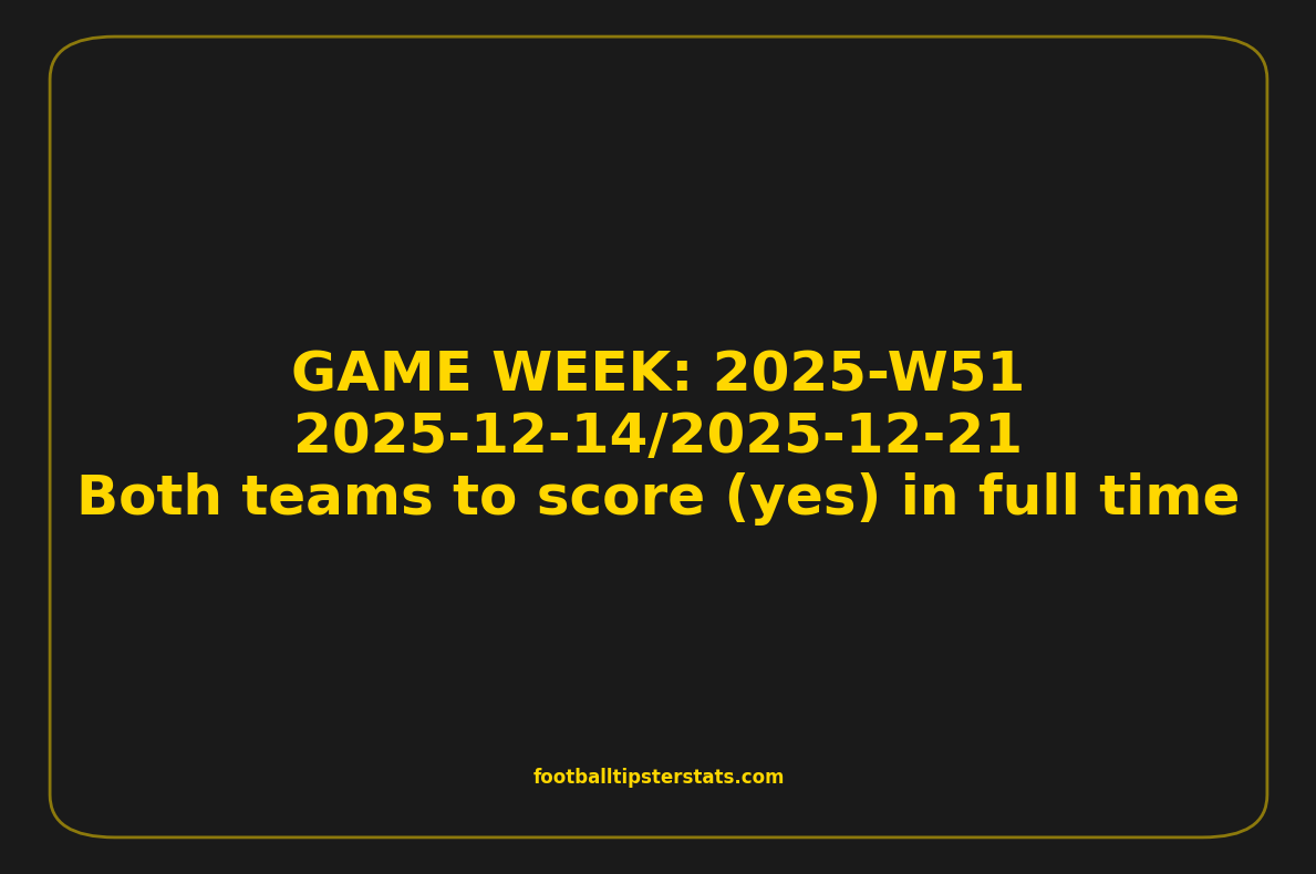 This game week analysis covers fixtures from GAME WEEK 51, December 14-21, 2025, with a strong statistical focus on Both teams to score (yes) in full time.