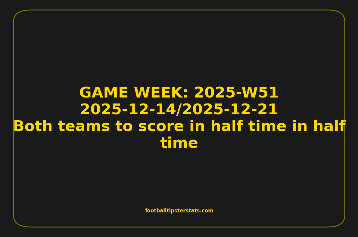 This game week analysis covers fixtures from GAME WEEK 51, December 14-21, 2025, with a strong statistical focus on Both teams to score in half time in half time.
