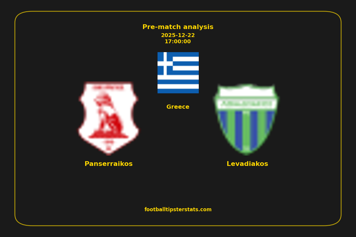 Analyzing the recent performance of Panserraikos and Levadiakos in Greece, we can derive insights that may inform future match predictions. By examining their individual game histories, head-to-head encounters, and overall trends, we can identify patterns that highlight strengths and weaknesses for both teams. This comprehensive review aims to provide a clearer understanding of their competitive dynamics and potential outcomes in upcoming fixtures.This pre-match analysis covers the upcoming fixture between Panserraikos and Levadiakos. Below you’ll find a detailed breakdown of both teams’ recent form, goal statistics, and head-to-head performance. These insights provide a clear picture of current momentum and can be valuable for match forecasting, tactical evaluation, or betting analysis. Please note that these suggestions are based on historical data and trends. While they provide valuable insights, actual match outcomes can be influenced by various unpredictable factors. Always consider multiple aspects before making any decisions based on these analyses.