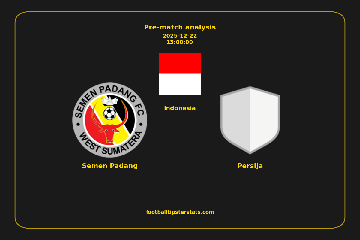 Analyzing the recent performance of Semen Padang and Persija in Indonesia, we can derive insights that may inform future match predictions. By examining their individual game histories, head-to-head encounters, and overall trends, we can identify patterns that highlight strengths and weaknesses for both teams. This comprehensive review aims to provide a clearer understanding of their competitive dynamics and potential outcomes in upcoming fixtures.This pre-match analysis covers the upcoming fixture between Semen Padang and Persija. Below you’ll find a detailed breakdown of both teams’ recent form, goal statistics, and head-to-head performance. These insights provide a clear picture of current momentum and can be valuable for match forecasting, tactical evaluation, or betting analysis. Please note that these suggestions are based on historical data and trends. While they provide valuable insights, actual match outcomes can be influenced by various unpredictable factors. Always consider multiple aspects before making any decisions based on these analyses.