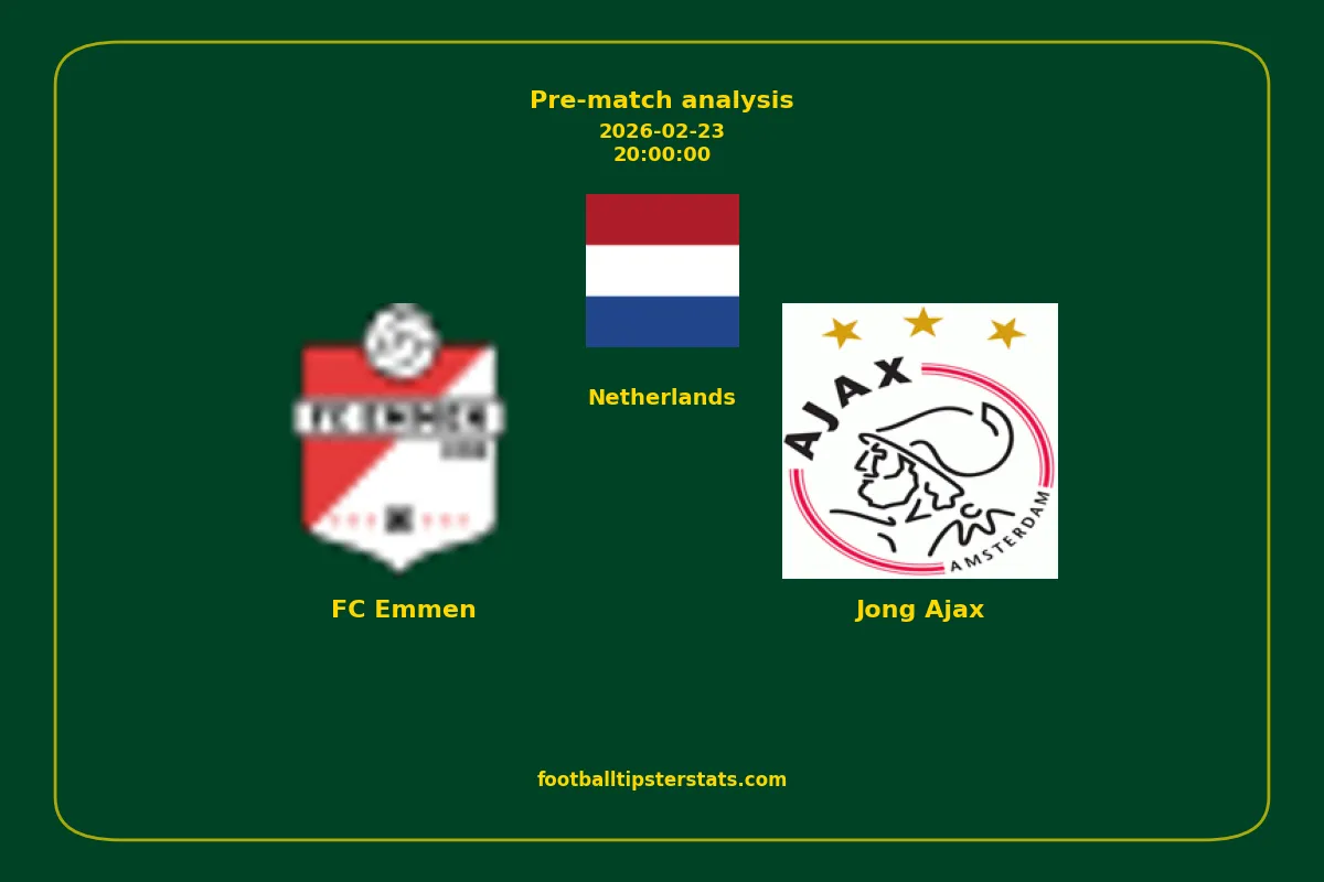 Analyzing the recent performance of FC Emmen and Jong Ajax in Netherlands, we can derive insights that may inform future match predictions. By examining their individual game histories, head-to-head encounters, and overall trends, we can identify patterns that highlight strengths and weaknesses for both teams. This comprehensive review aims to provide a clearer understanding of their competitive dynamics and potential outcomes in upcoming fixtures.This pre-match analysis covers the upcoming fixture between FC Emmen and Jong Ajax. Below you’ll find a detailed breakdown of both teams’ recent form, goal statistics, and head-to-head performance. These insights provide a clear picture of current momentum and can be valuable for match forecasting, tactical evaluation, or betting analysis. Please note that these suggestions are based on historical data and trends. While they provide valuable insights, actual match outcomes can be influenced by various unpredictable factors. Always consider multiple aspects before making any decisions based on these analyses.