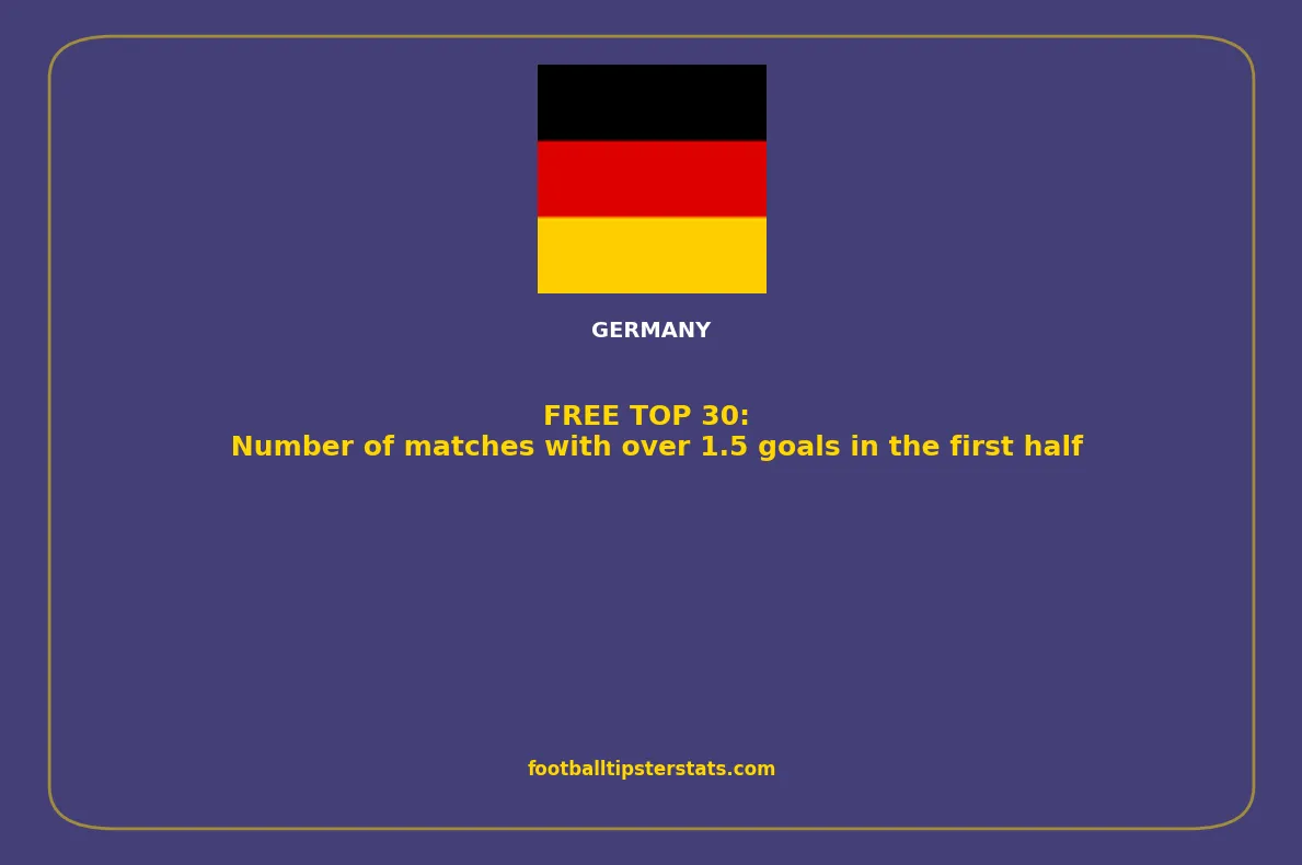 Here is a detailed overview of the teams with the highest number of matches with over 1.5 goals in the first half in Germany. This list highlights clubs that consistently produce high-scoring games, based on recent statistical performance. Whether you're analyzing trends, preparing betting strategies, or simply exploring offensive team profiles, these numbers offer a clear insight into which teams generate the most goal-rich matches.