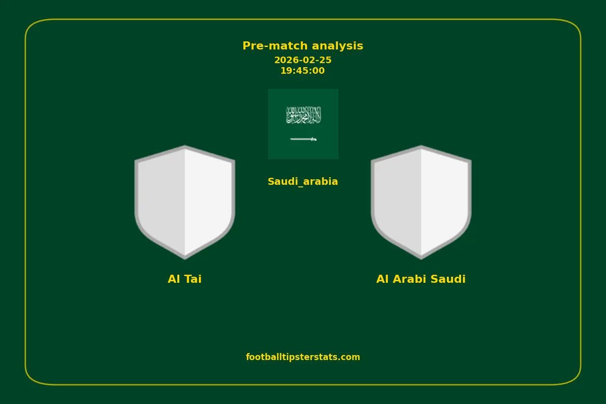 Analyzing the recent performance of Al Tai and Al Arabi Saudi in Saudi_arabia, we can derive insights that may inform future match predictions. By examining their individual game histories, head-to-head encounters, and overall trends, we can identify patterns that highlight strengths and weaknesses for both teams. This comprehensive review aims to provide a clearer understanding of their competitive dynamics and potential outcomes in upcoming fixtures.This pre-match analysis covers the upcoming fixture between Al Tai and Al Arabi Saudi. Below you’ll find a detailed breakdown of both teams’ recent form, goal statistics, and head-to-head performance. These insights provide a clear picture of current momentum and can be valuable for match forecasting, tactical evaluation, or betting analysis. Please note that these suggestions are based on historical data and trends. While they provide valuable insights, actual match outcomes can be influenced by various unpredictable factors. Always consider multiple aspects before making any decisions based on these analyses.