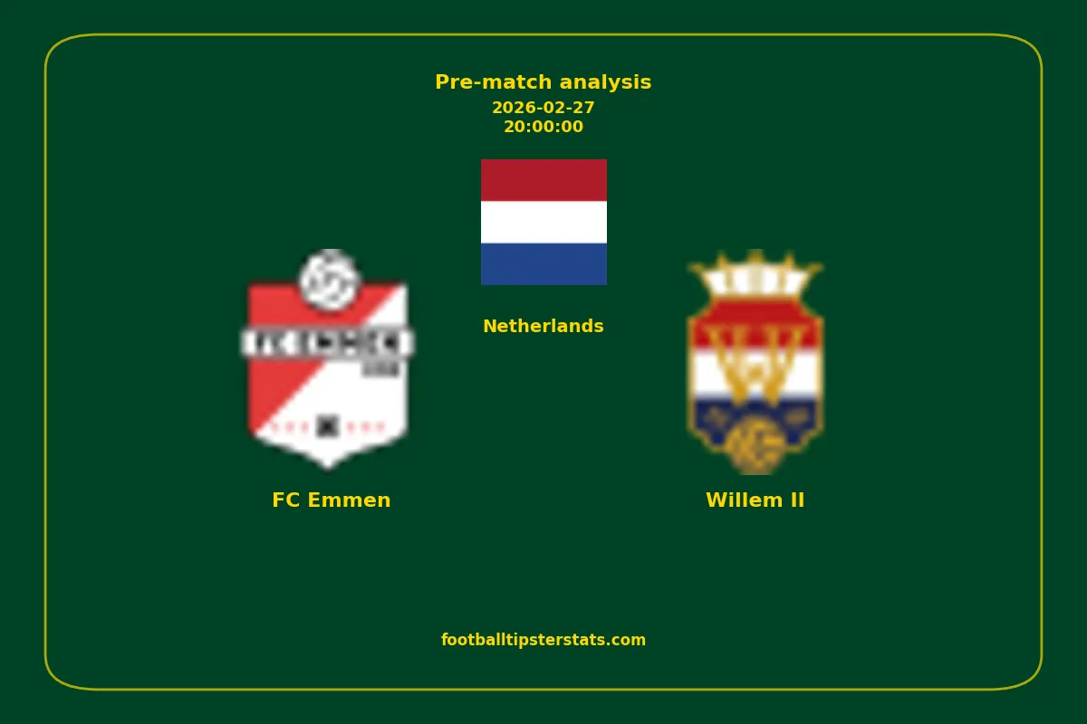 Analyzing the recent performance of FC Emmen and Willem II in Netherlands, we can derive insights that may inform future match predictions. By examining their individual game histories, head-to-head encounters, and overall trends, we can identify patterns that highlight strengths and weaknesses for both teams. This comprehensive review aims to provide a clearer understanding of their competitive dynamics and potential outcomes in upcoming fixtures.This pre-match analysis covers the upcoming fixture between FC Emmen and Willem II. Below you’ll find a detailed breakdown of both teams’ recent form, goal statistics, and head-to-head performance. These insights provide a clear picture of current momentum and can be valuable for match forecasting, tactical evaluation, or betting analysis. Please note that these suggestions are based on historical data and trends. While they provide valuable insights, actual match outcomes can be influenced by various unpredictable factors. Always consider multiple aspects before making any decisions based on these analyses.
