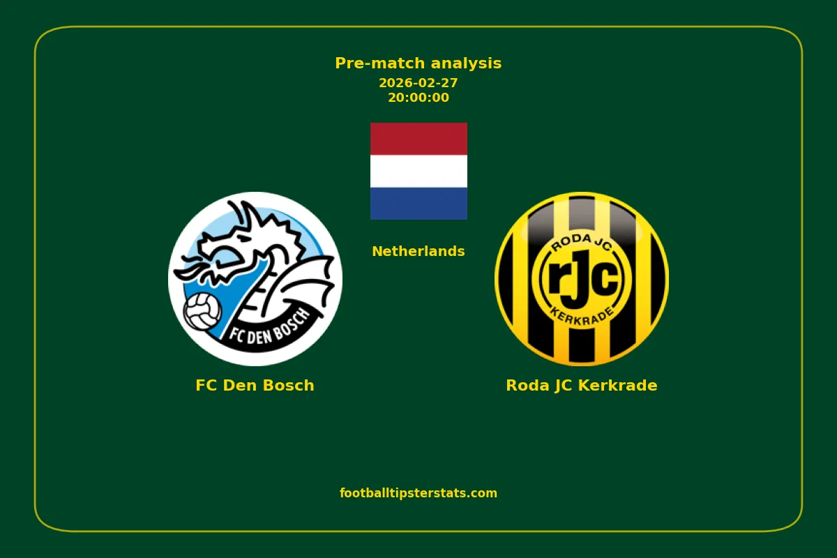 Analyzing the recent performance of FC Den Bosch and Roda JC Kerkrade in Netherlands, we can derive insights that may inform future match predictions. By examining their individual game histories, head-to-head encounters, and overall trends, we can identify patterns that highlight strengths and weaknesses for both teams. This comprehensive review aims to provide a clearer understanding of their competitive dynamics and potential outcomes in upcoming fixtures.This pre-match analysis covers the upcoming fixture between FC Den Bosch and Roda JC Kerkrade. Below you’ll find a detailed breakdown of both teams’ recent form, goal statistics, and head-to-head performance. These insights provide a clear picture of current momentum and can be valuable for match forecasting, tactical evaluation, or betting analysis. Please note that these suggestions are based on historical data and trends. While they provide valuable insights, actual match outcomes can be influenced by various unpredictable factors. Always consider multiple aspects before making any decisions based on these analyses.