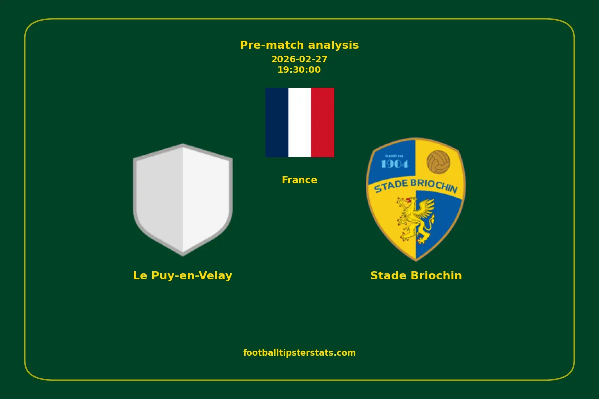 Analyzing the recent performance of Le Puy-en-Velay and Stade Briochin in France, we can derive insights that may inform future match predictions. By examining their individual game histories, head-to-head encounters, and overall trends, we can identify patterns that highlight strengths and weaknesses for both teams. This comprehensive review aims to provide a clearer understanding of their competitive dynamics and potential outcomes in upcoming fixtures.This pre-match analysis covers the upcoming fixture between Le Puy-en-Velay and Stade Briochin. Below you’ll find a detailed breakdown of both teams’ recent form, goal statistics, and head-to-head performance. These insights provide a clear picture of current momentum and can be valuable for match forecasting, tactical evaluation, or betting analysis. Please note that these suggestions are based on historical data and trends. While they provide valuable insights, actual match outcomes can be influenced by various unpredictable factors. Always consider multiple aspects before making any decisions based on these analyses.