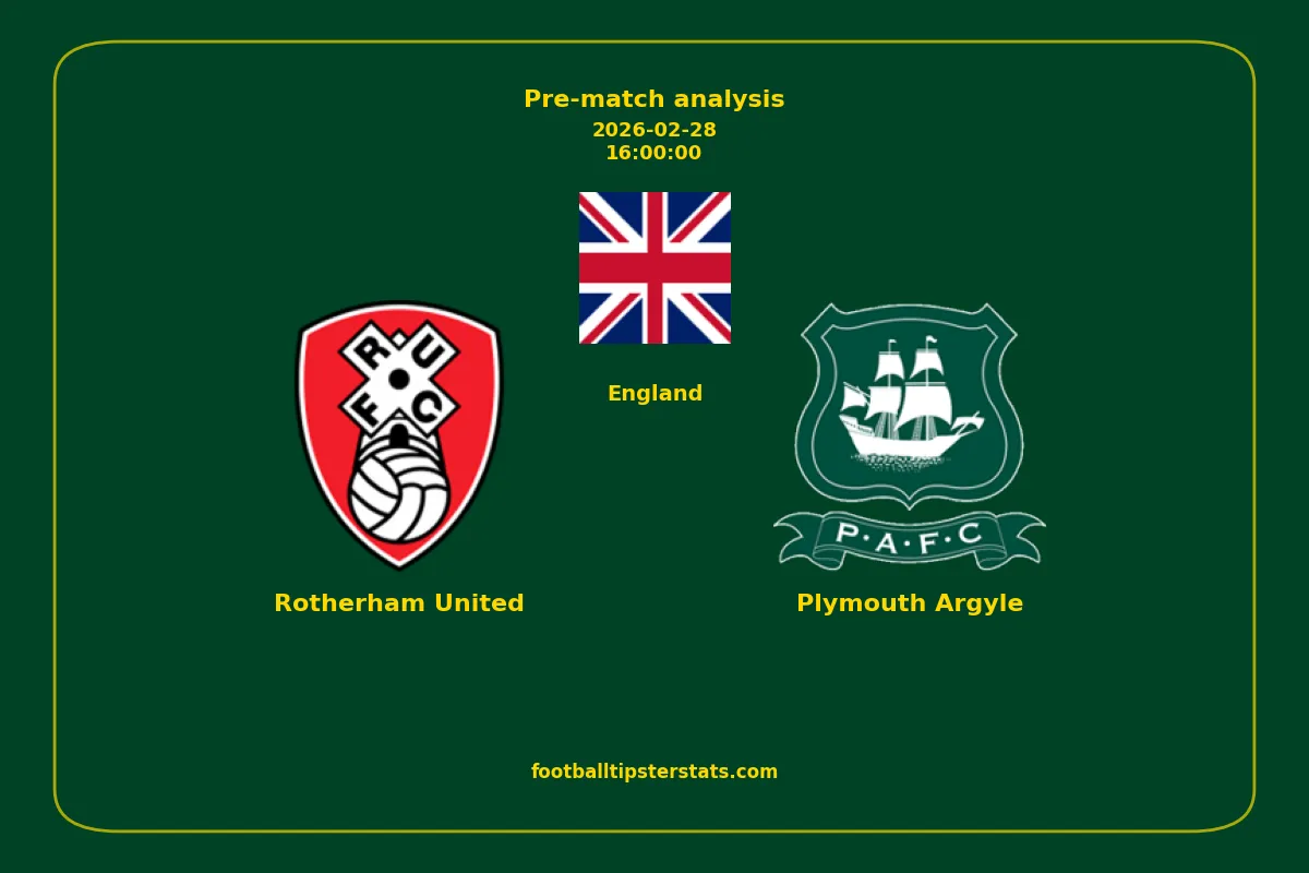 Analyzing the recent performance of Rotherham United and Plymouth Argyle in England, we can derive insights that may inform future match predictions. By examining their individual game histories, head-to-head encounters, and overall trends, we can identify patterns that highlight strengths and weaknesses for both teams. This comprehensive review aims to provide a clearer understanding of their competitive dynamics and potential outcomes in upcoming fixtures.This pre-match analysis covers the upcoming fixture between Rotherham United and Plymouth Argyle. Below you’ll find a detailed breakdown of both teams’ recent form, goal statistics, and head-to-head performance. These insights provide a clear picture of current momentum and can be valuable for match forecasting, tactical evaluation, or betting analysis. Please note that these suggestions are based on historical data and trends. While they provide valuable insights, actual match outcomes can be influenced by various unpredictable factors. Always consider multiple aspects before making any decisions based on these analyses.