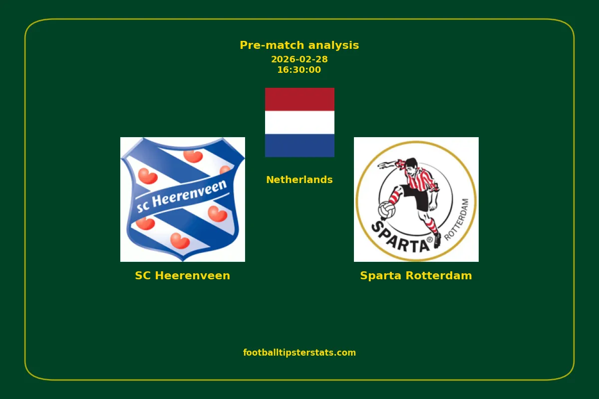 Analyzing the recent performance of SC Heerenveen and Sparta Rotterdam in Netherlands, we can derive insights that may inform future match predictions. By examining their individual game histories, head-to-head encounters, and overall trends, we can identify patterns that highlight strengths and weaknesses for both teams. This comprehensive review aims to provide a clearer understanding of their competitive dynamics and potential outcomes in upcoming fixtures.This pre-match analysis covers the upcoming fixture between SC Heerenveen and Sparta Rotterdam. Below you’ll find a detailed breakdown of both teams’ recent form, goal statistics, and head-to-head performance. These insights provide a clear picture of current momentum and can be valuable for match forecasting, tactical evaluation, or betting analysis. Please note that these suggestions are based on historical data and trends. While they provide valuable insights, actual match outcomes can be influenced by various unpredictable factors. Always consider multiple aspects before making any decisions based on these analyses.