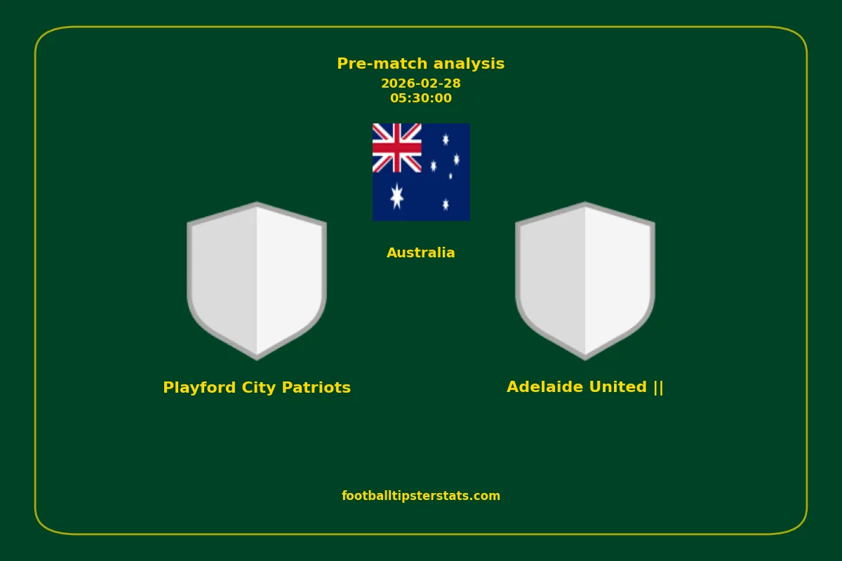 Analyzing the recent performance of Playford City Patriots and Adelaide United || in Australia, we can derive insights that may inform future match predictions. By examining their individual game histories, head-to-head encounters, and overall trends, we can identify patterns that highlight strengths and weaknesses for both teams. This comprehensive review aims to provide a clearer understanding of their competitive dynamics and potential outcomes in upcoming fixtures.This pre-match analysis covers the upcoming fixture between Playford City Patriots and Adelaide United ||. Below you’ll find a detailed breakdown of both teams’ recent form, goal statistics, and head-to-head performance. These insights provide a clear picture of current momentum and can be valuable for match forecasting, tactical evaluation, or betting analysis. Please note that these suggestions are based on historical data and trends. While they provide valuable insights, actual match outcomes can be influenced by various unpredictable factors. Always consider multiple aspects before making any decisions based on these analyses.