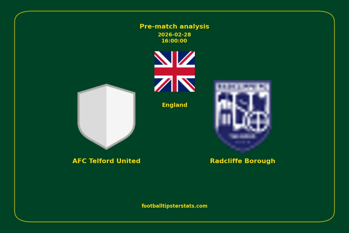 Analyzing the recent performance of AFC Telford United and Radcliffe Borough in England, we can derive insights that may inform future match predictions. By examining their individual game histories, head-to-head encounters, and overall trends, we can identify patterns that highlight strengths and weaknesses for both teams. This comprehensive review aims to provide a clearer understanding of their competitive dynamics and potential outcomes in upcoming fixtures.This pre-match analysis covers the upcoming fixture between AFC Telford United and Radcliffe Borough. Below you’ll find a detailed breakdown of both teams’ recent form, goal statistics, and head-to-head performance. These insights provide a clear picture of current momentum and can be valuable for match forecasting, tactical evaluation, or betting analysis. Please note that these suggestions are based on historical data and trends. While they provide valuable insights, actual match outcomes can be influenced by various unpredictable factors. Always consider multiple aspects before making any decisions based on these analyses.