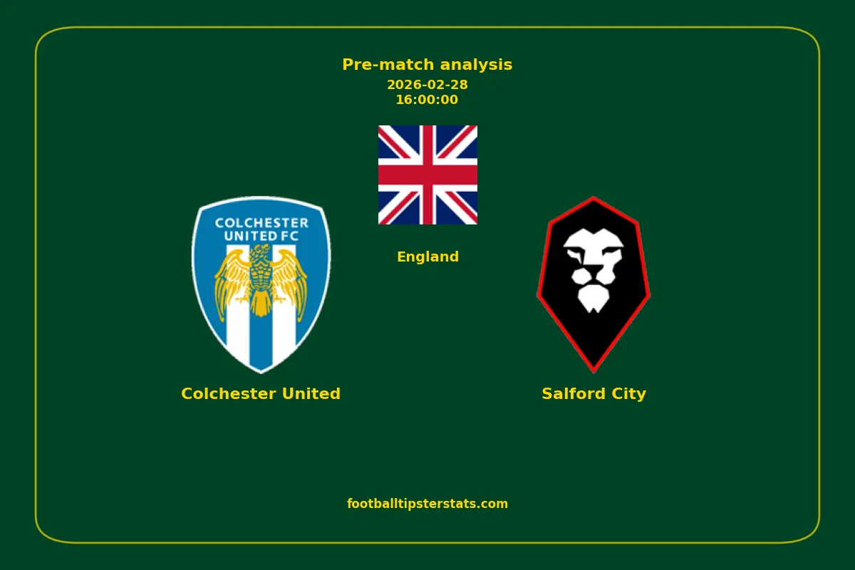Analyzing the recent performance of Colchester United and Salford City in England, we can derive insights that may inform future match predictions. By examining their individual game histories, head-to-head encounters, and overall trends, we can identify patterns that highlight strengths and weaknesses for both teams. This comprehensive review aims to provide a clearer understanding of their competitive dynamics and potential outcomes in upcoming fixtures.This pre-match analysis covers the upcoming fixture between Colchester United and Salford City. Below you’ll find a detailed breakdown of both teams’ recent form, goal statistics, and head-to-head performance. These insights provide a clear picture of current momentum and can be valuable for match forecasting, tactical evaluation, or betting analysis. Please note that these suggestions are based on historical data and trends. While they provide valuable insights, actual match outcomes can be influenced by various unpredictable factors. Always consider multiple aspects before making any decisions based on these analyses.