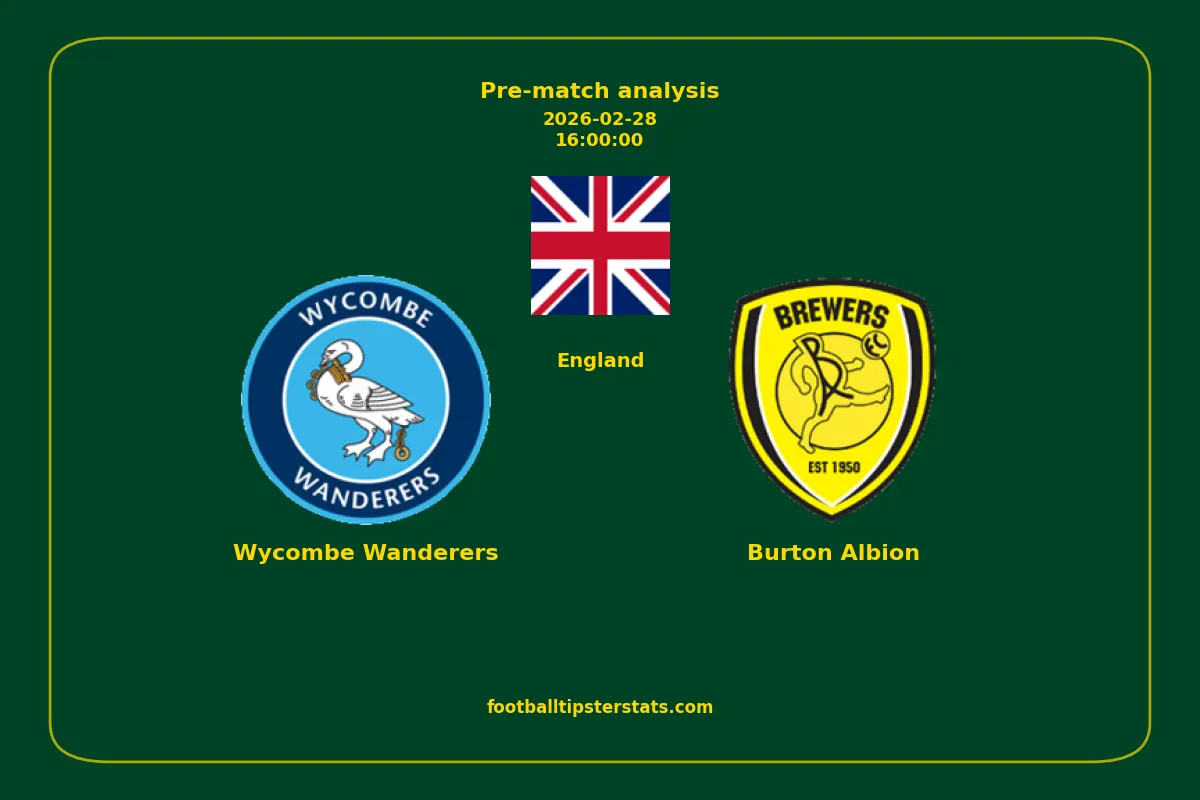 Analyzing the recent performance of Wycombe Wanderers and Burton Albion in England, we can derive insights that may inform future match predictions. By examining their individual game histories, head-to-head encounters, and overall trends, we can identify patterns that highlight strengths and weaknesses for both teams. This comprehensive review aims to provide a clearer understanding of their competitive dynamics and potential outcomes in upcoming fixtures.This pre-match analysis covers the upcoming fixture between Wycombe Wanderers and Burton Albion. Below you’ll find a detailed breakdown of both teams’ recent form, goal statistics, and head-to-head performance. These insights provide a clear picture of current momentum and can be valuable for match forecasting, tactical evaluation, or betting analysis. Please note that these suggestions are based on historical data and trends. While they provide valuable insights, actual match outcomes can be influenced by various unpredictable factors. Always consider multiple aspects before making any decisions based on these analyses.