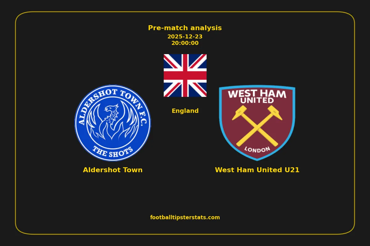 Analyzing the recent performance of Aldershot Town and West Ham United U21 in England, we can derive insights that may inform future match predictions. By examining their individual game histories, head-to-head encounters, and overall trends, we can identify patterns that highlight strengths and weaknesses for both teams. This comprehensive review aims to provide a clearer understanding of their competitive dynamics and potential outcomes in upcoming fixtures.This pre-match analysis covers the upcoming fixture between Aldershot Town and West Ham United U21. Below you’ll find a detailed breakdown of both teams’ recent form, goal statistics, and head-to-head performance. These insights provide a clear picture of current momentum and can be valuable for match forecasting, tactical evaluation, or betting analysis. Please note that these suggestions are based on historical data and trends. While they provide valuable insights, actual match outcomes can be influenced by various unpredictable factors. Always consider multiple aspects before making any decisions based on these analyses.