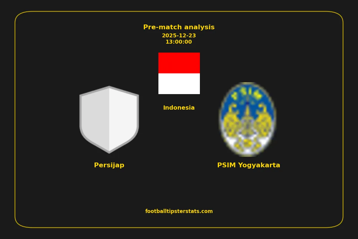 Analyzing the recent performance of Persijap and PSIM Yogyakarta in Indonesia, we can derive insights that may inform future match predictions. By examining their individual game histories, head-to-head encounters, and overall trends, we can identify patterns that highlight strengths and weaknesses for both teams. This comprehensive review aims to provide a clearer understanding of their competitive dynamics and potential outcomes in upcoming fixtures.This pre-match analysis covers the upcoming fixture between Persijap and PSIM Yogyakarta. Below you’ll find a detailed breakdown of both teams’ recent form, goal statistics, and head-to-head performance. These insights provide a clear picture of current momentum and can be valuable for match forecasting, tactical evaluation, or betting analysis. Please note that these suggestions are based on historical data and trends. While they provide valuable insights, actual match outcomes can be influenced by various unpredictable factors. Always consider multiple aspects before making any decisions based on these analyses.