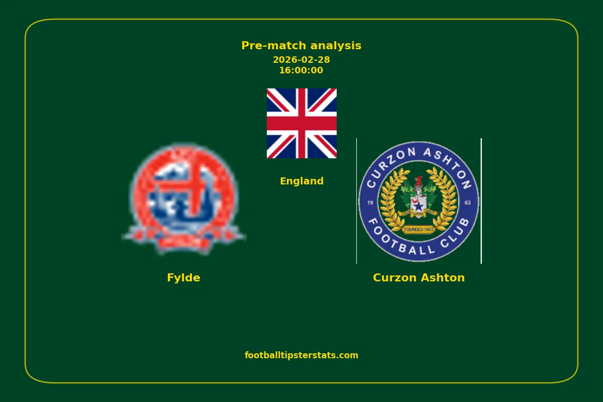 Analyzing the recent performance of Fylde and Curzon Ashton in England, we can derive insights that may inform future match predictions. By examining their individual game histories, head-to-head encounters, and overall trends, we can identify patterns that highlight strengths and weaknesses for both teams. This comprehensive review aims to provide a clearer understanding of their competitive dynamics and potential outcomes in upcoming fixtures.This pre-match analysis covers the upcoming fixture between Fylde and Curzon Ashton. Below you’ll find a detailed breakdown of both teams’ recent form, goal statistics, and head-to-head performance. These insights provide a clear picture of current momentum and can be valuable for match forecasting, tactical evaluation, or betting analysis. Please note that these suggestions are based on historical data and trends. While they provide valuable insights, actual match outcomes can be influenced by various unpredictable factors. Always consider multiple aspects before making any decisions based on these analyses.