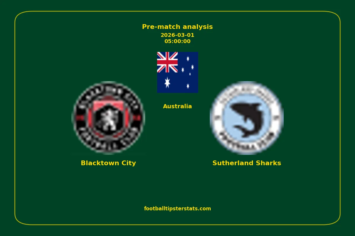 Analyzing the recent performance of Blacktown City and Sutherland Sharks in Australia, we can derive insights that may inform future match predictions. By examining their individual game histories, head-to-head encounters, and overall trends, we can identify patterns that highlight strengths and weaknesses for both teams. This comprehensive review aims to provide a clearer understanding of their competitive dynamics and potential outcomes in upcoming fixtures.This pre-match analysis covers the upcoming fixture between Blacktown City and Sutherland Sharks. Below you’ll find a detailed breakdown of both teams’ recent form, goal statistics, and head-to-head performance. These insights provide a clear picture of current momentum and can be valuable for match forecasting, tactical evaluation, or betting analysis. Please note that these suggestions are based on historical data and trends. While they provide valuable insights, actual match outcomes can be influenced by various unpredictable factors. Always consider multiple aspects before making any decisions based on these analyses.