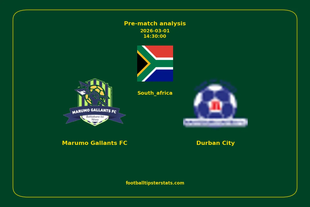 Analyzing the recent performance of Marumo Gallants FC and Durban City in South_africa, we can derive insights that may inform future match predictions. By examining their individual game histories, head-to-head encounters, and overall trends, we can identify patterns that highlight strengths and weaknesses for both teams. This comprehensive review aims to provide a clearer understanding of their competitive dynamics and potential outcomes in upcoming fixtures.This pre-match analysis covers the upcoming fixture between Marumo Gallants FC and Durban City. Below you’ll find a detailed breakdown of both teams’ recent form, goal statistics, and head-to-head performance. These insights provide a clear picture of current momentum and can be valuable for match forecasting, tactical evaluation, or betting analysis. Please note that these suggestions are based on historical data and trends. While they provide valuable insights, actual match outcomes can be influenced by various unpredictable factors. Always consider multiple aspects before making any decisions based on these analyses.