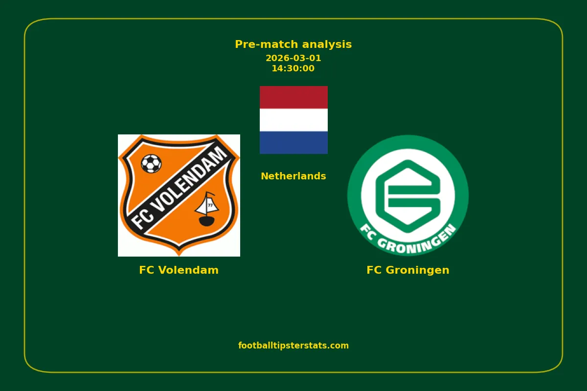Analyzing the recent performance of FC Volendam and FC Groningen in Netherlands, we can derive insights that may inform future match predictions. By examining their individual game histories, head-to-head encounters, and overall trends, we can identify patterns that highlight strengths and weaknesses for both teams. This comprehensive review aims to provide a clearer understanding of their competitive dynamics and potential outcomes in upcoming fixtures.This pre-match analysis covers the upcoming fixture between FC Volendam and FC Groningen. Below you’ll find a detailed breakdown of both teams’ recent form, goal statistics, and head-to-head performance. These insights provide a clear picture of current momentum and can be valuable for match forecasting, tactical evaluation, or betting analysis. Please note that these suggestions are based on historical data and trends. While they provide valuable insights, actual match outcomes can be influenced by various unpredictable factors. Always consider multiple aspects before making any decisions based on these analyses.
