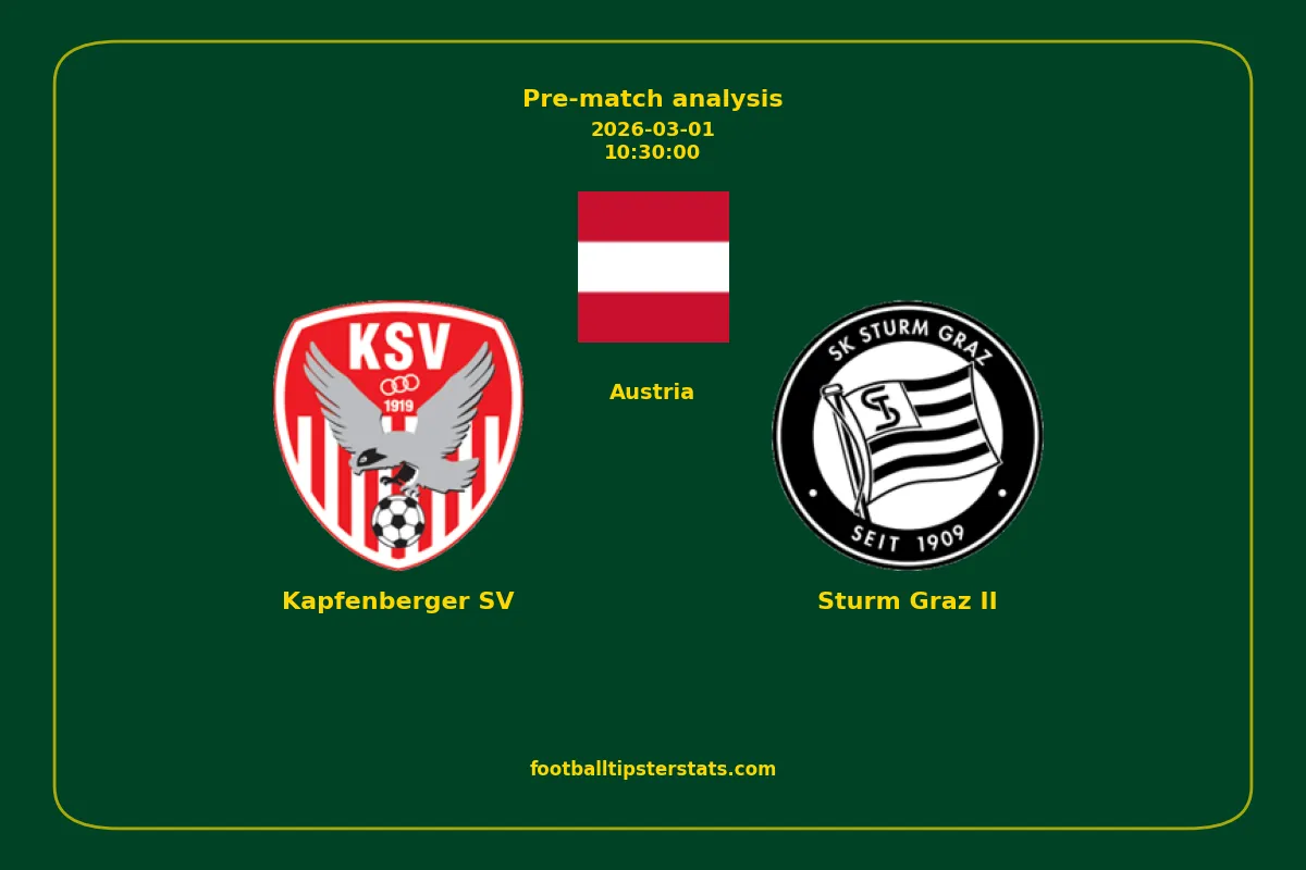 Analyzing the recent performance of Kapfenberger SV and Sturm Graz II in Austria, we can derive insights that may inform future match predictions. By examining their individual game histories, head-to-head encounters, and overall trends, we can identify patterns that highlight strengths and weaknesses for both teams. This comprehensive review aims to provide a clearer understanding of their competitive dynamics and potential outcomes in upcoming fixtures.This pre-match analysis covers the upcoming fixture between Kapfenberger SV and Sturm Graz II. Below you’ll find a detailed breakdown of both teams’ recent form, goal statistics, and head-to-head performance. These insights provide a clear picture of current momentum and can be valuable for match forecasting, tactical evaluation, or betting analysis. Please note that these suggestions are based on historical data and trends. While they provide valuable insights, actual match outcomes can be influenced by various unpredictable factors. Always consider multiple aspects before making any decisions based on these analyses.