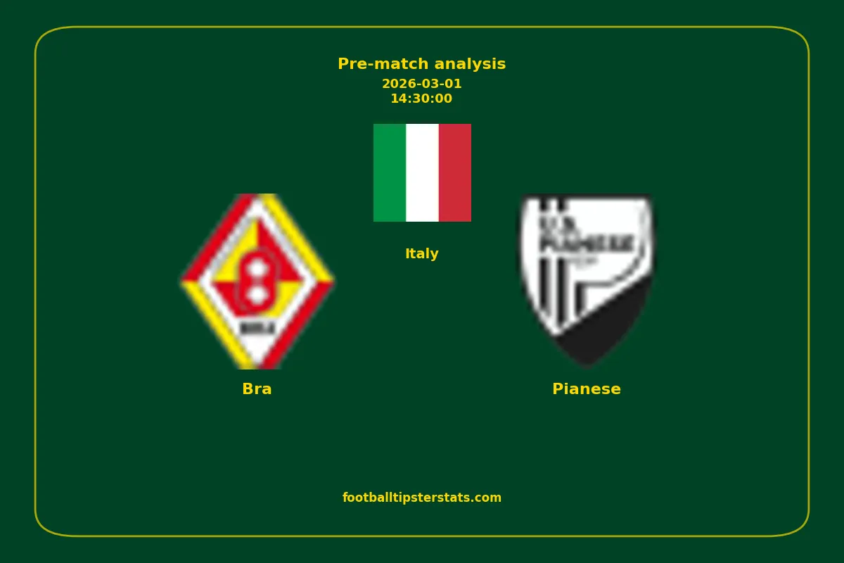 Analyzing the recent performance of Bra and Pianese in Italy, we can derive insights that may inform future match predictions. By examining their individual game histories, head-to-head encounters, and overall trends, we can identify patterns that highlight strengths and weaknesses for both teams. This comprehensive review aims to provide a clearer understanding of their competitive dynamics and potential outcomes in upcoming fixtures.This pre-match analysis covers the upcoming fixture between Bra and Pianese. Below you’ll find a detailed breakdown of both teams’ recent form, goal statistics, and head-to-head performance. These insights provide a clear picture of current momentum and can be valuable for match forecasting, tactical evaluation, or betting analysis. Please note that these suggestions are based on historical data and trends. While they provide valuable insights, actual match outcomes can be influenced by various unpredictable factors. Always consider multiple aspects before making any decisions based on these analyses.