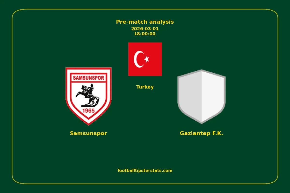Analyzing the recent performance of Samsunspor and Gaziantep F.K. in Turkey, we can derive insights that may inform future match predictions. By examining their individual game histories, head-to-head encounters, and overall trends, we can identify patterns that highlight strengths and weaknesses for both teams. This comprehensive review aims to provide a clearer understanding of their competitive dynamics and potential outcomes in upcoming fixtures.This pre-match analysis covers the upcoming fixture between Samsunspor and Gaziantep F.K.. Below you’ll find a detailed breakdown of both teams’ recent form, goal statistics, and head-to-head performance. These insights provide a clear picture of current momentum and can be valuable for match forecasting, tactical evaluation, or betting analysis. Please note that these suggestions are based on historical data and trends. While they provide valuable insights, actual match outcomes can be influenced by various unpredictable factors. Always consider multiple aspects before making any decisions based on these analyses.