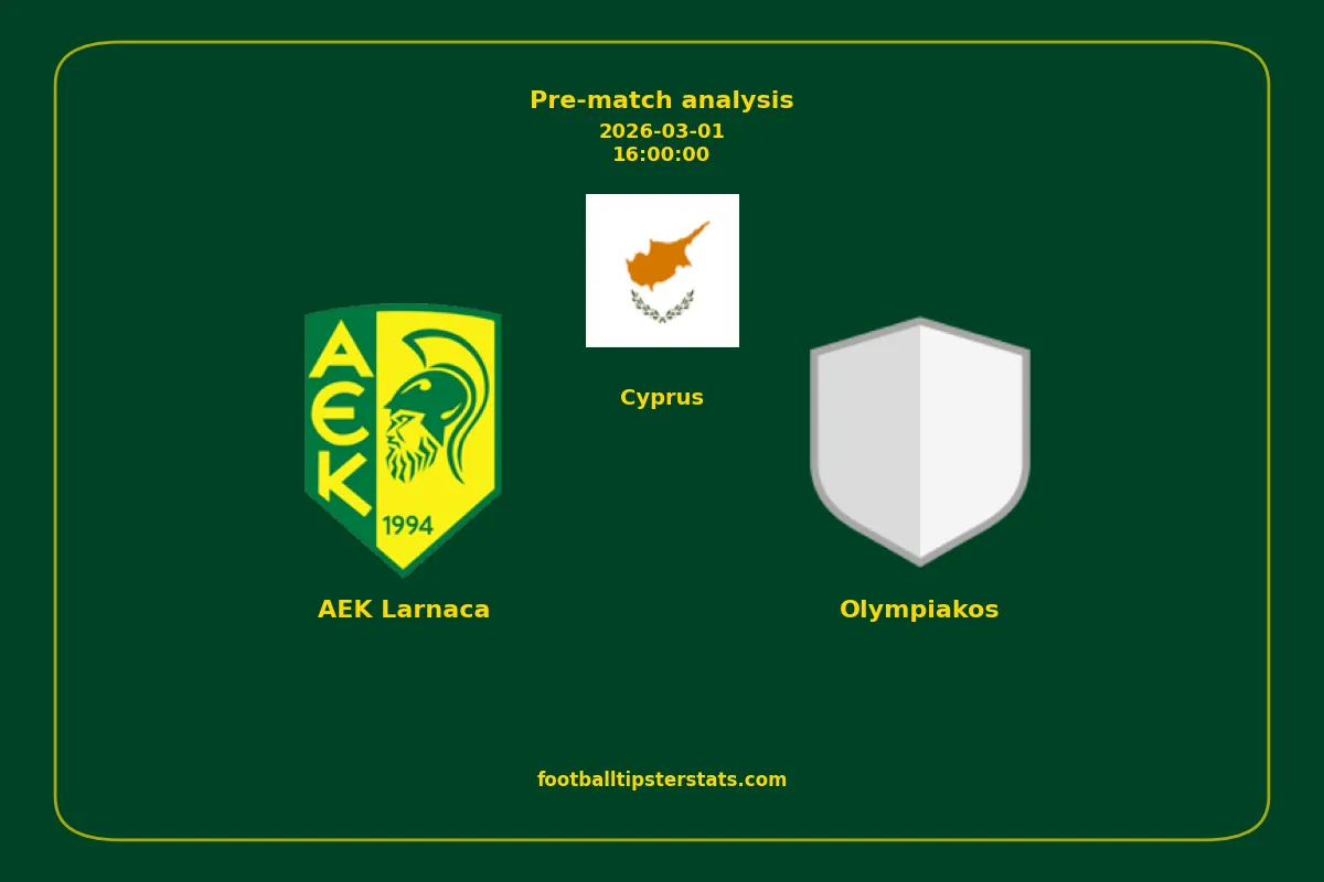 Analyzing the recent performance of AEK Larnaca and Olympiakos in Cyprus, we can derive insights that may inform future match predictions. By examining their individual game histories, head-to-head encounters, and overall trends, we can identify patterns that highlight strengths and weaknesses for both teams. This comprehensive review aims to provide a clearer understanding of their competitive dynamics and potential outcomes in upcoming fixtures.This pre-match analysis covers the upcoming fixture between AEK Larnaca and Olympiakos. Below you’ll find a detailed breakdown of both teams’ recent form, goal statistics, and head-to-head performance. These insights provide a clear picture of current momentum and can be valuable for match forecasting, tactical evaluation, or betting analysis. Please note that these suggestions are based on historical data and trends. While they provide valuable insights, actual match outcomes can be influenced by various unpredictable factors. Always consider multiple aspects before making any decisions based on these analyses.