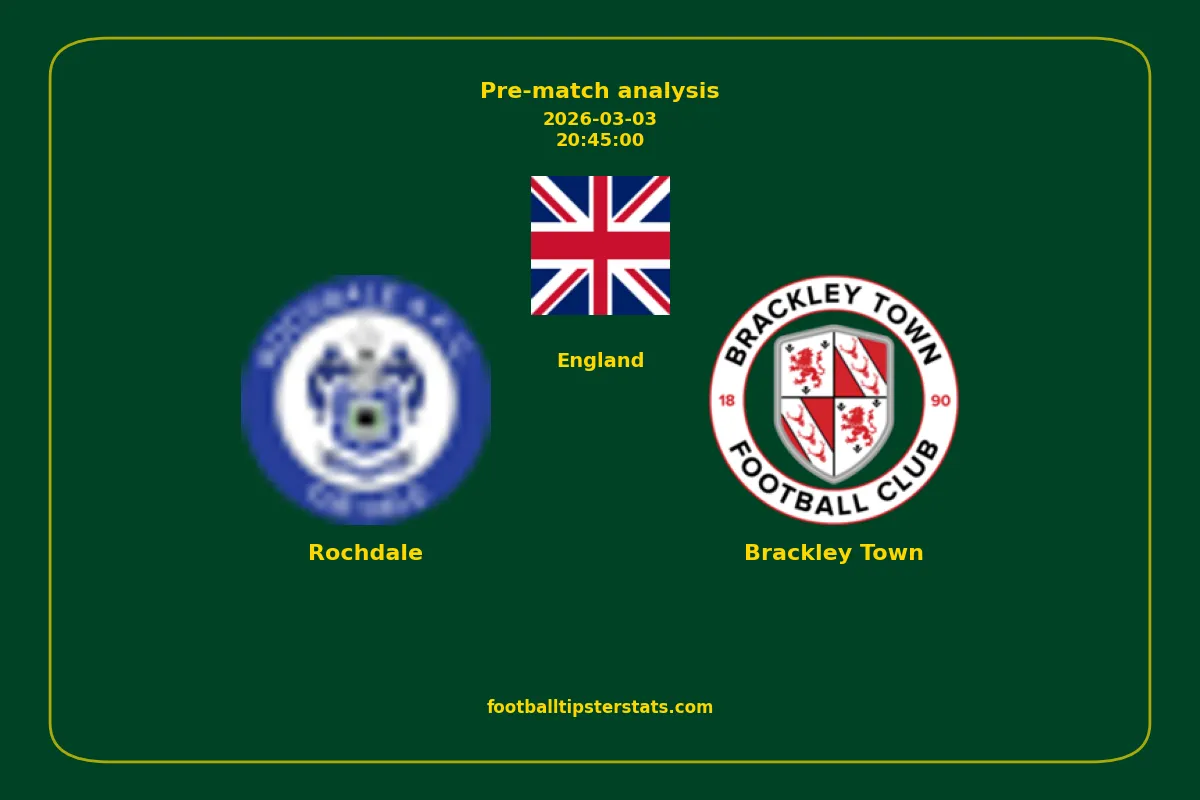 Analyzing the recent performance of Rochdale and Brackley Town in England, we can derive insights that may inform future match predictions. By examining their individual game histories, head-to-head encounters, and overall trends, we can identify patterns that highlight strengths and weaknesses for both teams. This comprehensive review aims to provide a clearer understanding of their competitive dynamics and potential outcomes in upcoming fixtures.This pre-match analysis covers the upcoming fixture between Rochdale and Brackley Town. Below you’ll find a detailed breakdown of both teams’ recent form, goal statistics, and head-to-head performance. These insights provide a clear picture of current momentum and can be valuable for match forecasting, tactical evaluation, or betting analysis. Please note that these suggestions are based on historical data and trends. While they provide valuable insights, actual match outcomes can be influenced by various unpredictable factors. Always consider multiple aspects before making any decisions based on these analyses.