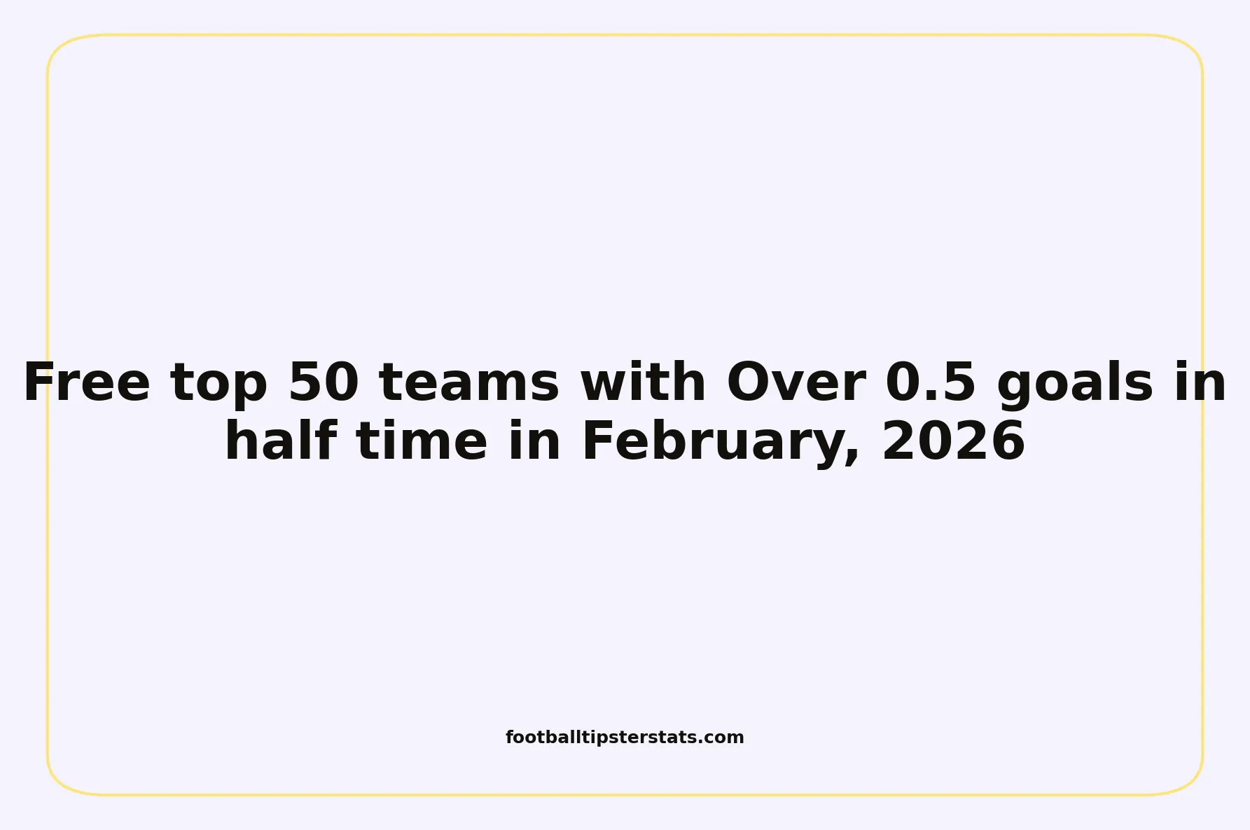 Based on the analysis of hundreds of matches played in February 2026, we have identified the 50 teams that are statistically the most reliable for Over 0.5 goals in half time. This overview provides a clear, precise, and data-driven insight into the most stable efficiency trends across the world.