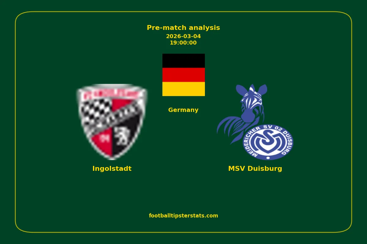 Analyzing the recent performance of Ingolstadt and MSV Duisburg in Germany, we can derive insights that may inform future match predictions. By examining their individual game histories, head-to-head encounters, and overall trends, we can identify patterns that highlight strengths and weaknesses for both teams. This comprehensive review aims to provide a clearer understanding of their competitive dynamics and potential outcomes in upcoming fixtures.This pre-match analysis covers the upcoming fixture between Ingolstadt and MSV Duisburg. Below you’ll find a detailed breakdown of both teams’ recent form, goal statistics, and head-to-head performance. These insights provide a clear picture of current momentum and can be valuable for match forecasting, tactical evaluation, or betting analysis. Please note that these suggestions are based on historical data and trends. While they provide valuable insights, actual match outcomes can be influenced by various unpredictable factors. Always consider multiple aspects before making any decisions based on these analyses.