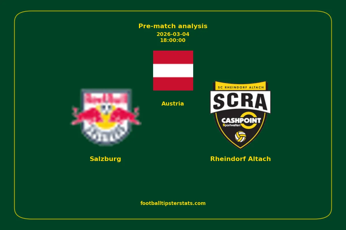 Analyzing the recent performance of Salzburg and Rheindorf Altach in Austria, we can derive insights that may inform future match predictions. By examining their individual game histories, head-to-head encounters, and overall trends, we can identify patterns that highlight strengths and weaknesses for both teams. This comprehensive review aims to provide a clearer understanding of their competitive dynamics and potential outcomes in upcoming fixtures.This pre-match analysis covers the upcoming fixture between Salzburg and Rheindorf Altach. Below you’ll find a detailed breakdown of both teams’ recent form, goal statistics, and head-to-head performance. These insights provide a clear picture of current momentum and can be valuable for match forecasting, tactical evaluation, or betting analysis. Please note that these suggestions are based on historical data and trends. While they provide valuable insights, actual match outcomes can be influenced by various unpredictable factors. Always consider multiple aspects before making any decisions based on these analyses.