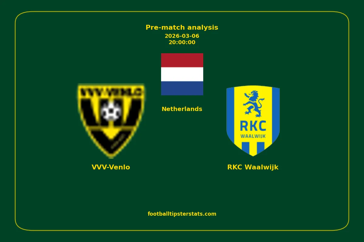 Analyzing the recent performance of VVV-Venlo and RKC Waalwijk in Netherlands, we can derive insights that may inform future match predictions. By examining their individual game histories, head-to-head encounters, and overall trends, we can identify patterns that highlight strengths and weaknesses for both teams. This comprehensive review aims to provide a clearer understanding of their competitive dynamics and potential outcomes in upcoming fixtures.This pre-match analysis covers the upcoming fixture between VVV-Venlo and RKC Waalwijk. Below you’ll find a detailed breakdown of both teams’ recent form, goal statistics, and head-to-head performance. These insights provide a clear picture of current momentum and can be valuable for match forecasting, tactical evaluation, or betting analysis. Please note that these suggestions are based on historical data and trends. While they provide valuable insights, actual match outcomes can be influenced by various unpredictable factors. Always consider multiple aspects before making any decisions based on these analyses.