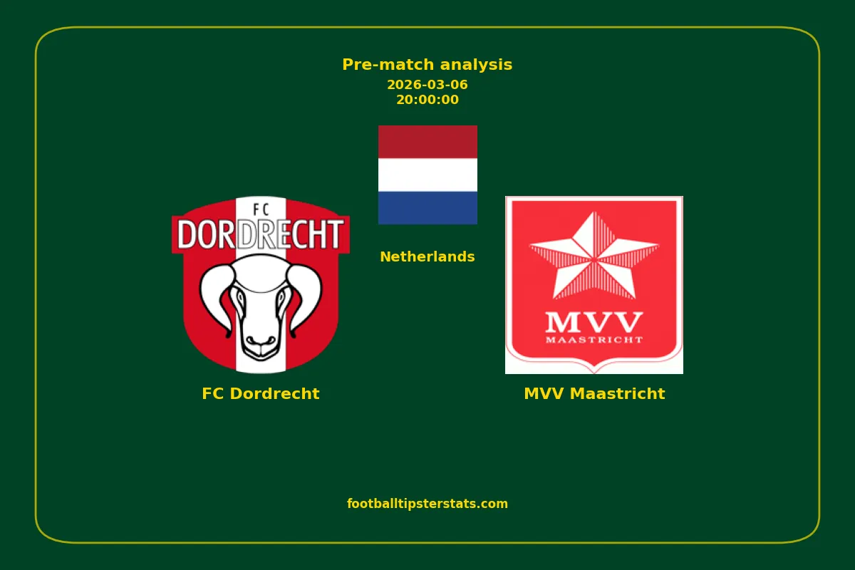 Analyzing the recent performance of FC Dordrecht and MVV Maastricht in Netherlands, we can derive insights that may inform future match predictions. By examining their individual game histories, head-to-head encounters, and overall trends, we can identify patterns that highlight strengths and weaknesses for both teams. This comprehensive review aims to provide a clearer understanding of their competitive dynamics and potential outcomes in upcoming fixtures.This pre-match analysis covers the upcoming fixture between FC Dordrecht and MVV Maastricht. Below you’ll find a detailed breakdown of both teams’ recent form, goal statistics, and head-to-head performance. These insights provide a clear picture of current momentum and can be valuable for match forecasting, tactical evaluation, or betting analysis. Please note that these suggestions are based on historical data and trends. While they provide valuable insights, actual match outcomes can be influenced by various unpredictable factors. Always consider multiple aspects before making any decisions based on these analyses.