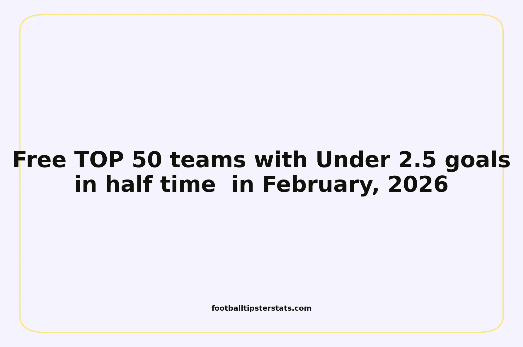 Based on the analysis of hundreds of matches played in February 2026, we have identified the 50 teams that are statistically the most reliable for Under 2.5 goals in half time. This overview provides a clear, precise, and data-driven insight into the most stable efficiency trends across the world.