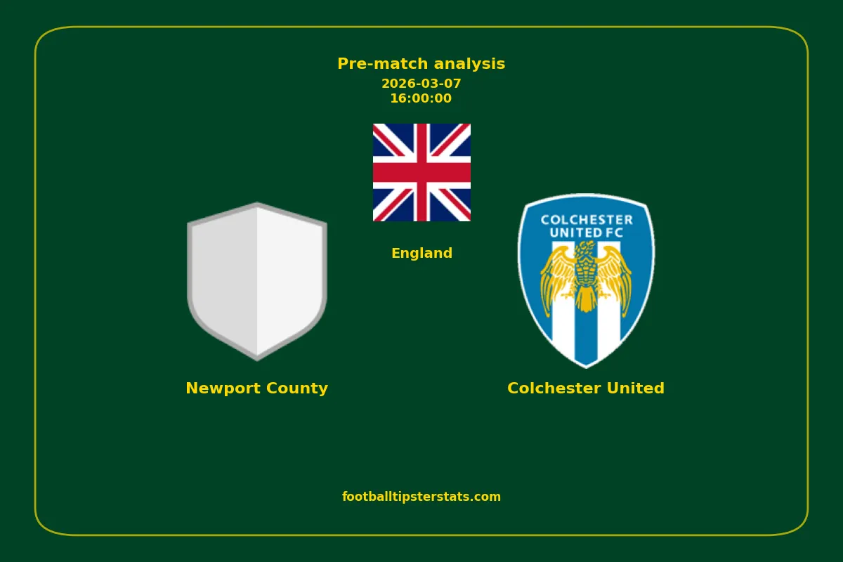 Analyzing the recent performance of Newport County and Colchester United in England, we can derive insights that may inform future match predictions. By examining their individual game histories, head-to-head encounters, and overall trends, we can identify patterns that highlight strengths and weaknesses for both teams. This comprehensive review aims to provide a clearer understanding of their competitive dynamics and potential outcomes in upcoming fixtures.This pre-match analysis covers the upcoming fixture between Newport County and Colchester United. Below you’ll find a detailed breakdown of both teams’ recent form, goal statistics, and head-to-head performance. These insights provide a clear picture of current momentum and can be valuable for match forecasting, tactical evaluation, or betting analysis. Please note that these suggestions are based on historical data and trends. While they provide valuable insights, actual match outcomes can be influenced by various unpredictable factors. Always consider multiple aspects before making any decisions based on these analyses.