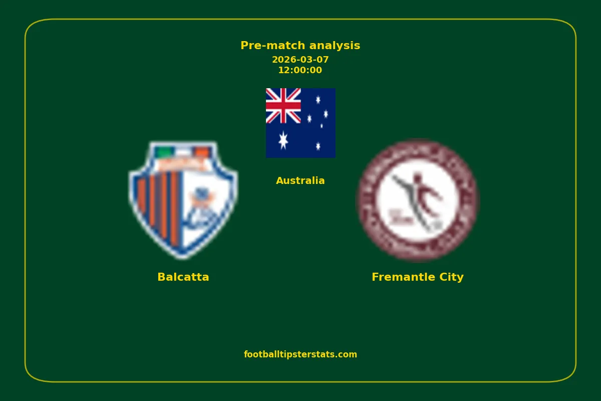 Analyzing the recent performance of Balcatta and Fremantle City in Australia, we can derive insights that may inform future match predictions. By examining their individual game histories, head-to-head encounters, and overall trends, we can identify patterns that highlight strengths and weaknesses for both teams. This comprehensive review aims to provide a clearer understanding of their competitive dynamics and potential outcomes in upcoming fixtures.This pre-match analysis covers the upcoming fixture between Balcatta and Fremantle City. Below you’ll find a detailed breakdown of both teams’ recent form, goal statistics, and head-to-head performance. These insights provide a clear picture of current momentum and can be valuable for match forecasting, tactical evaluation, or betting analysis. Please note that these suggestions are based on historical data and trends. While they provide valuable insights, actual match outcomes can be influenced by various unpredictable factors. Always consider multiple aspects before making any decisions based on these analyses.