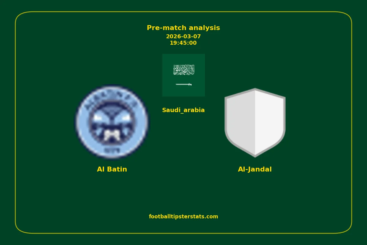 Analyzing the recent performance of Al Batin and Al-Jandal in Saudi_arabia, we can derive insights that may inform future match predictions. By examining their individual game histories, head-to-head encounters, and overall trends, we can identify patterns that highlight strengths and weaknesses for both teams. This comprehensive review aims to provide a clearer understanding of their competitive dynamics and potential outcomes in upcoming fixtures.This pre-match analysis covers the upcoming fixture between Al Batin and Al-Jandal. Below you’ll find a detailed breakdown of both teams’ recent form, goal statistics, and head-to-head performance. These insights provide a clear picture of current momentum and can be valuable for match forecasting, tactical evaluation, or betting analysis. Please note that these suggestions are based on historical data and trends. While they provide valuable insights, actual match outcomes can be influenced by various unpredictable factors. Always consider multiple aspects before making any decisions based on these analyses.