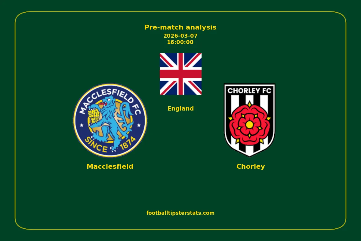 Analyzing the recent performance of Macclesfield and Chorley in England, we can derive insights that may inform future match predictions. By examining their individual game histories, head-to-head encounters, and overall trends, we can identify patterns that highlight strengths and weaknesses for both teams. This comprehensive review aims to provide a clearer understanding of their competitive dynamics and potential outcomes in upcoming fixtures.This pre-match analysis covers the upcoming fixture between Macclesfield and Chorley. Below you’ll find a detailed breakdown of both teams’ recent form, goal statistics, and head-to-head performance. These insights provide a clear picture of current momentum and can be valuable for match forecasting, tactical evaluation, or betting analysis. Please note that these suggestions are based on historical data and trends. While they provide valuable insights, actual match outcomes can be influenced by various unpredictable factors. Always consider multiple aspects before making any decisions based on these analyses.